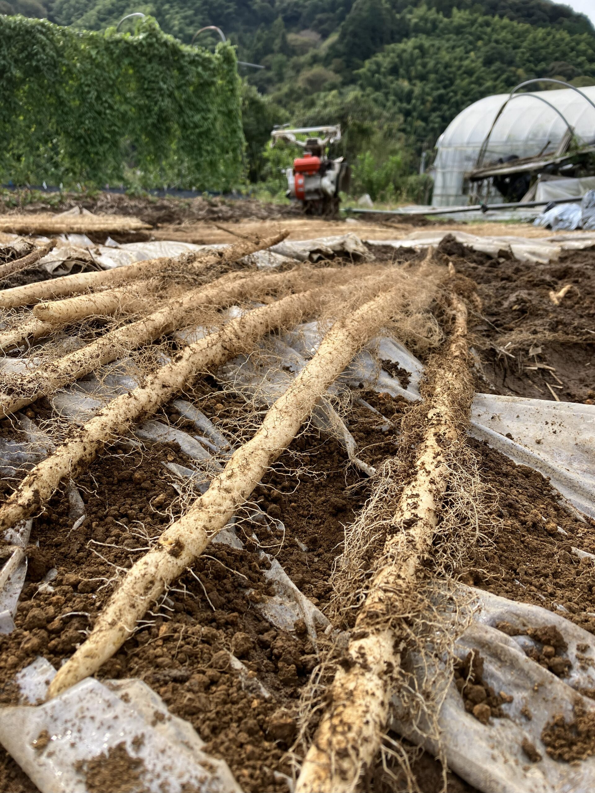 The season for harvesting Jinenjo (Japanese wild yam) has finally arrived!After months of care and patience, we’re carefully digging up each precious gift from nature.It’s hard and demanding work, but this is the moment we look forward to the most.
