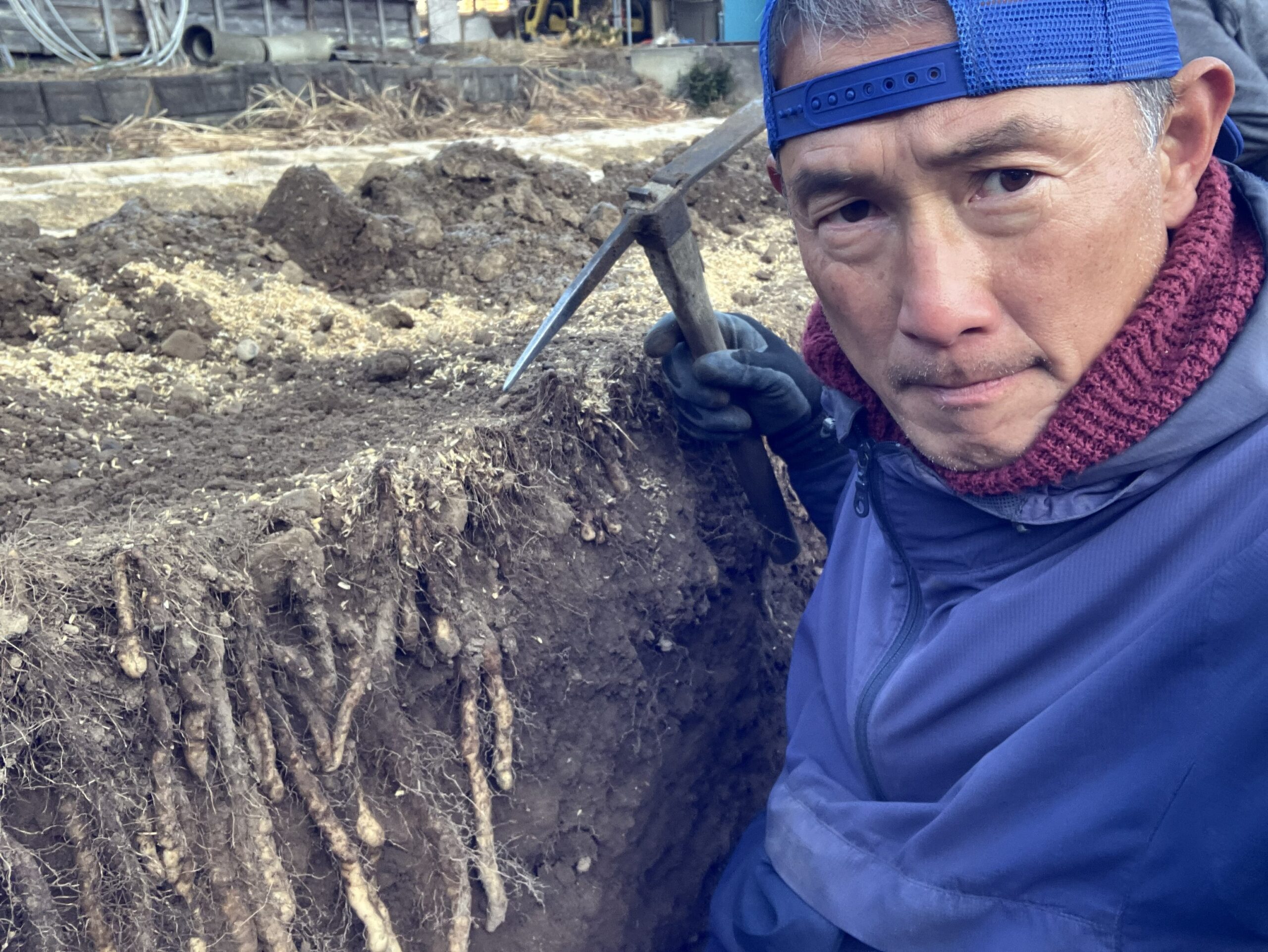Carefully digging up Japanese yam seed tubers from the soil.These small roots will become next season’s precious crop.Farming always begins quietly, beneath our feet.