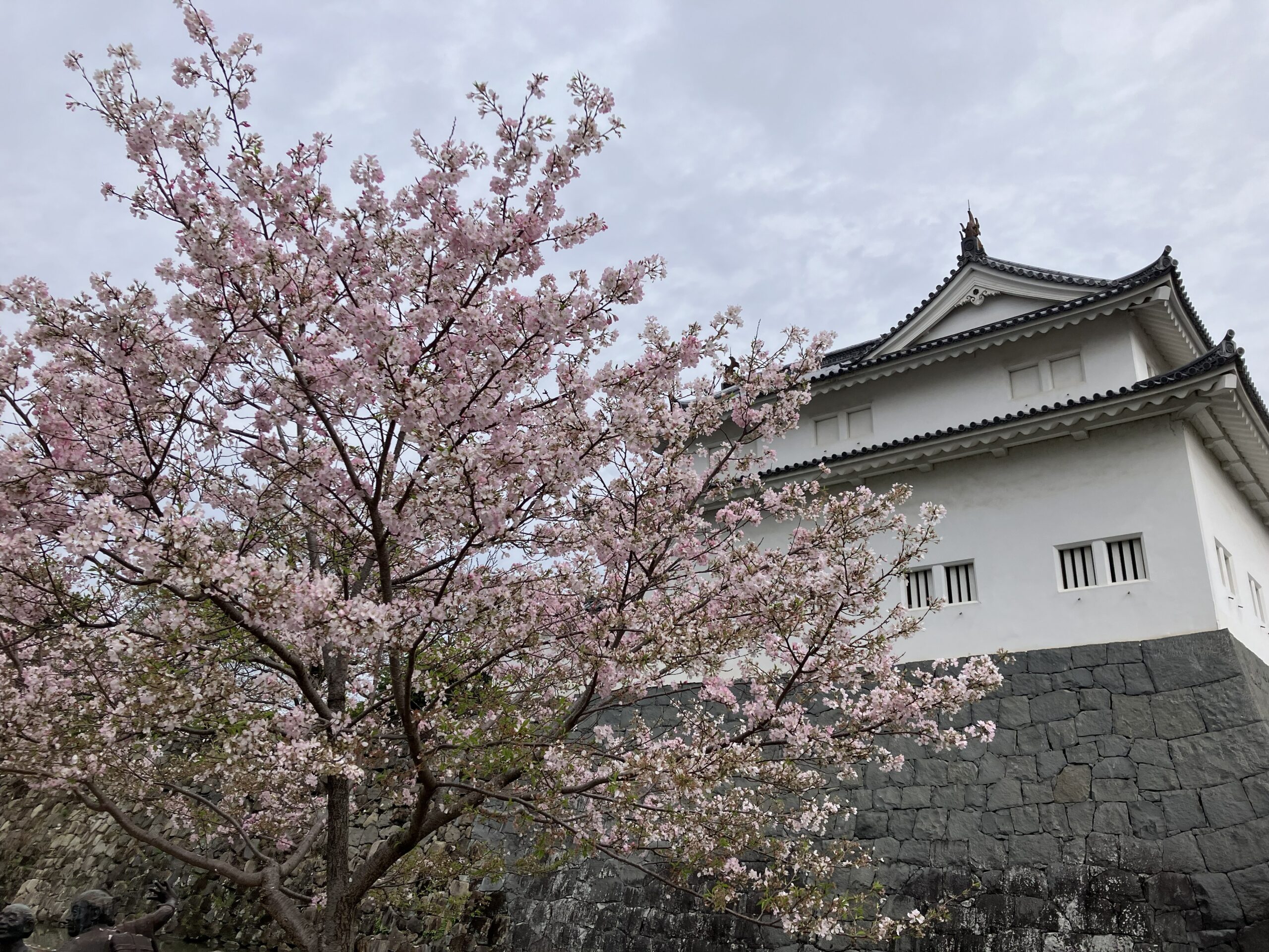 Cherry blossoms in full bloom gently embrace a quiet corner of the castle.A special spring moment where history and nature come together.